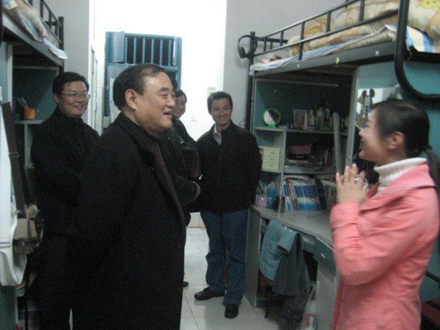 12月10日晚,校党委书记卞国忠在办公室主任吴金月、学生处处长钱何珍、保卫处处长方继经、后勤与国有资产处副处长张叶生、物业管理科副科长李长久、教务处实践教学科副科长余结根,先后来到新校区食堂、学生宿舍、大学生综合服务中心、教室、实验楼、图书馆等地方,检查学生食堂和宿舍,看望上自习的学生,慰问加班的老师,检查物业公司人员值班在岗情况。