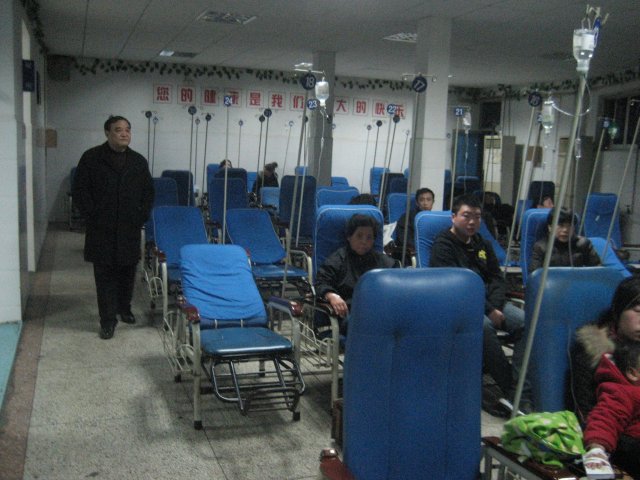 22:00 卞国忠书记到达弋矶山医院,检查急症输液大厅工作